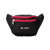 • Three zippered compartments: 1) Front pocket with detachabale key ring 2) Large middle compartment 3) Secure back pocket for valuables