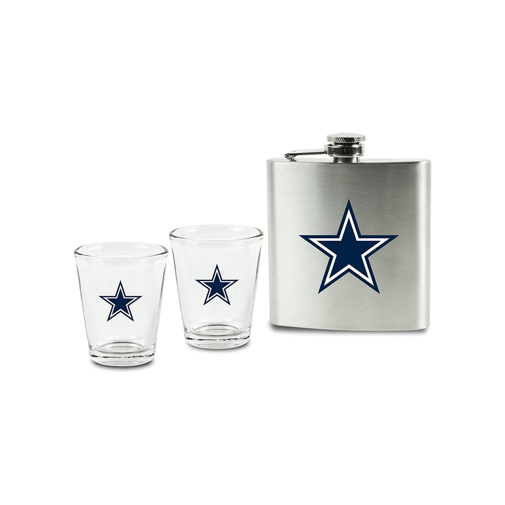 - NFL 샷 잔 및 브러시 처리된 스테인리스 스틸 플라스크 세트